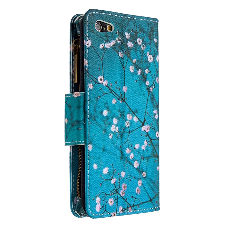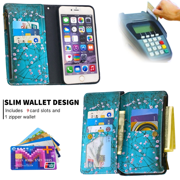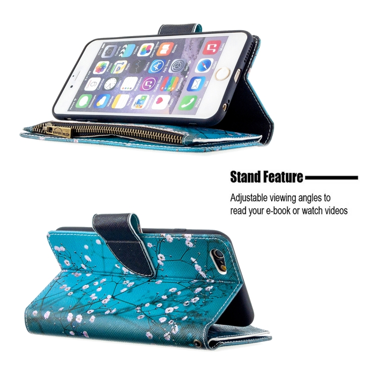 Funda de Cuero para iPhone 6S Plus y 6 Plus con Tapa Horizontal, Soporte, Ranuras y Cremallera (Plum Blossom)