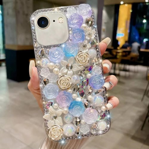 Funda para teléfono iPhone 7/8 Rose Hand-Set Pearl Diamond PC (Azul)