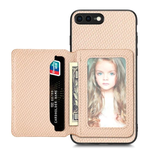 Caja de Teléfono para iPhone 7 Plus 8 Plus Bolsa de Tarjeta Magnética Fibra de Carbono (Caqui)