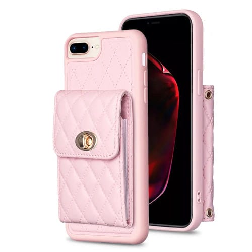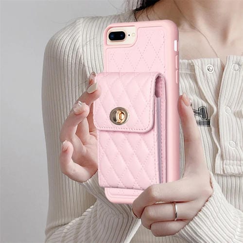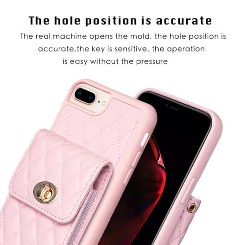 Caja de Teléfono de Cuero Rombal para iPhone 7 Plus y 8 Plus con Hebilla de Metal Vertical (Rosa)