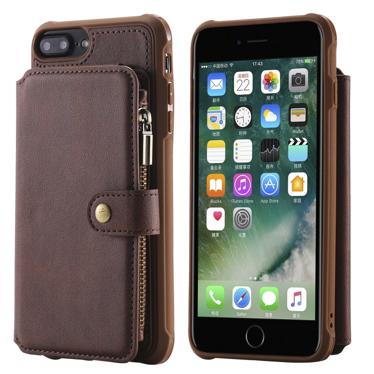 Funda Protectora iPhone 7 Plus 8 Plus a Prueba de Golpes con Cremallera Ranuras para Tarjetas Soporte y Función Billetera (Café)