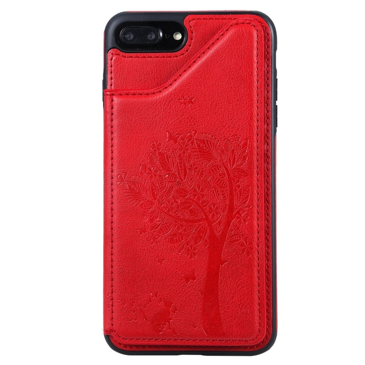 Funda Protectora para iPhone 7 Plus 8 Plus con Patrón Relieve Árbol de Gato Ranuras para Tarjetas y Marco de Fotos (Rojo)