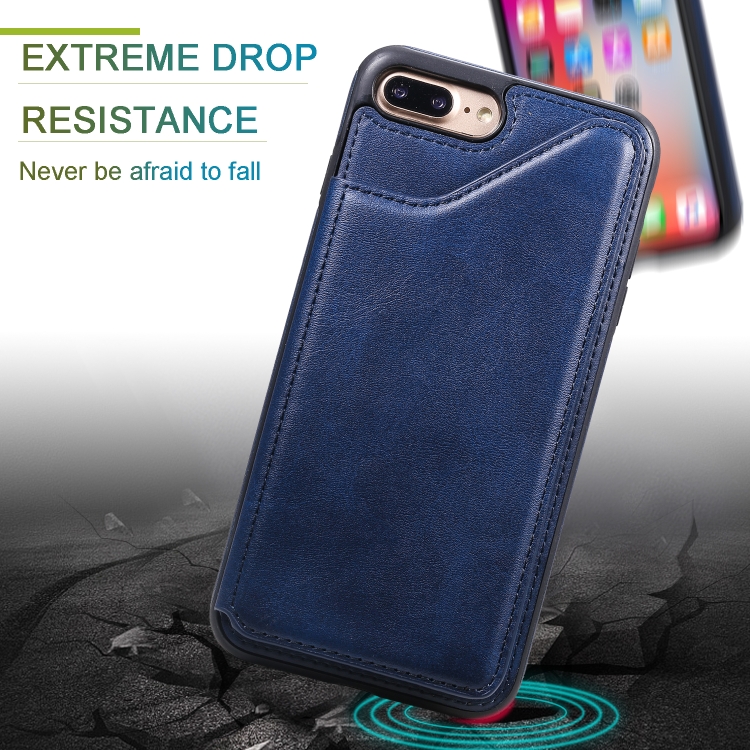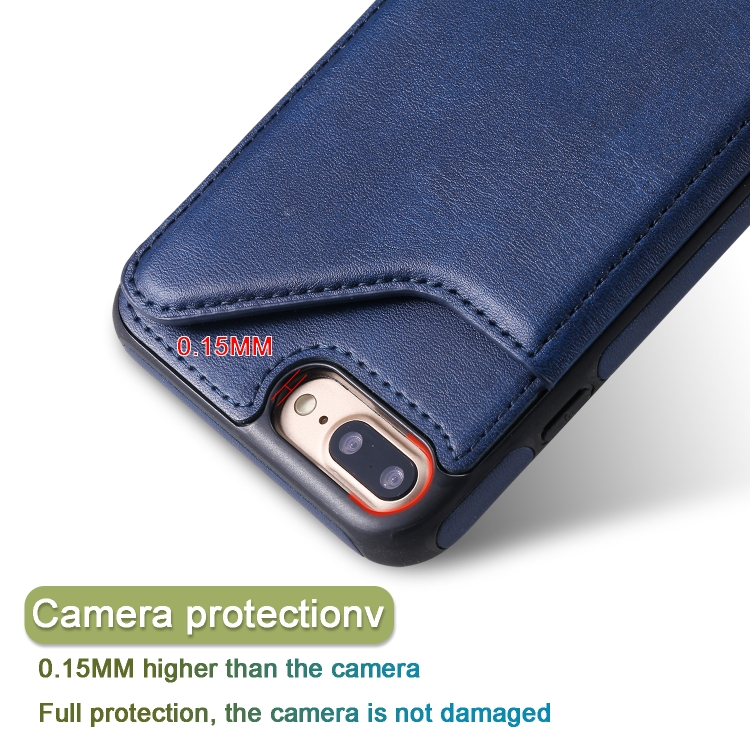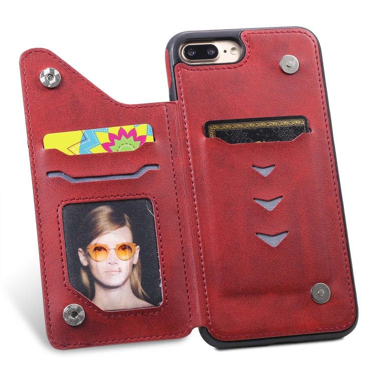 Funda Protectora iPhone 7 Plus 8 Plus Textura Pantorrilla Soporte Ranuras Tarjetas Marco (Rojo)