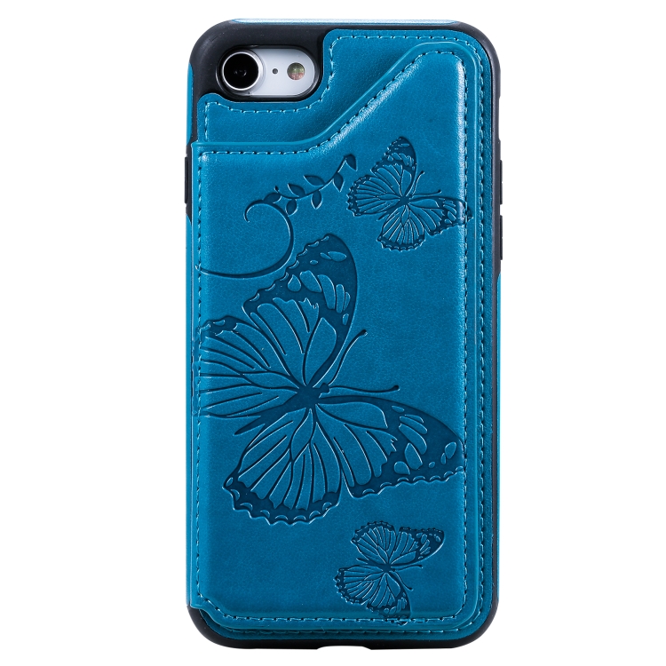 Funda Protectora para iPhone 7 y 8 Estampado Mariposas con Soporte y Ranuras para Tarjetas (Azul)