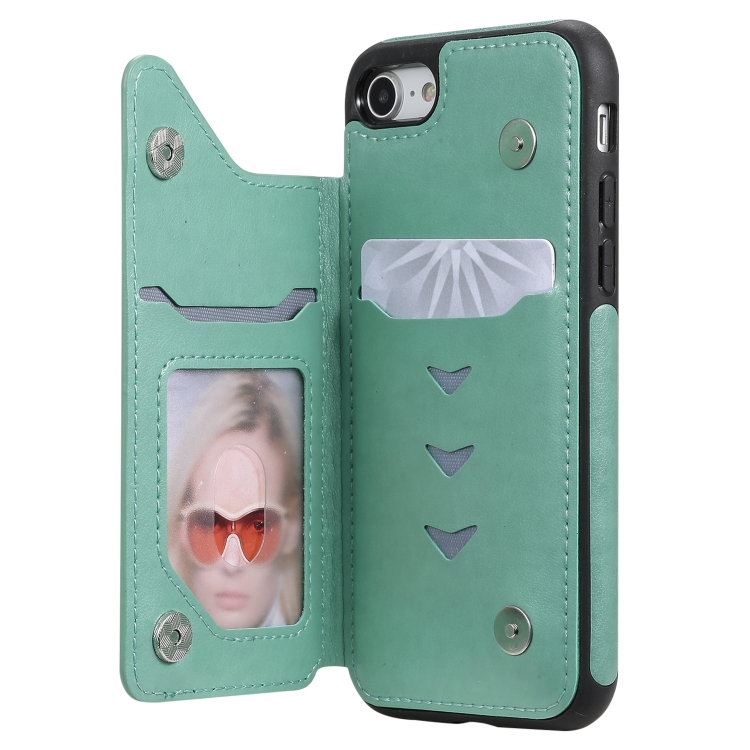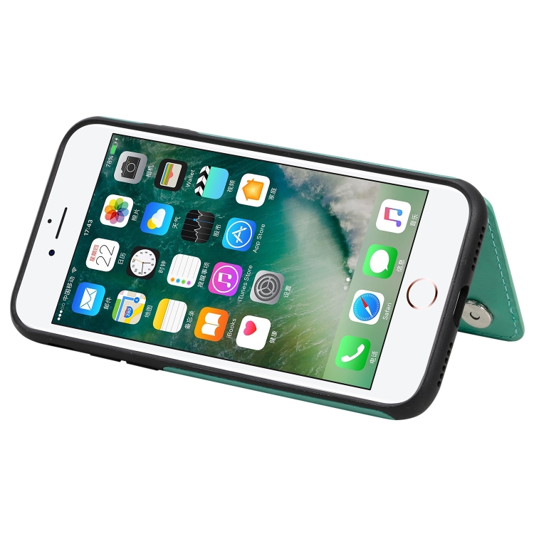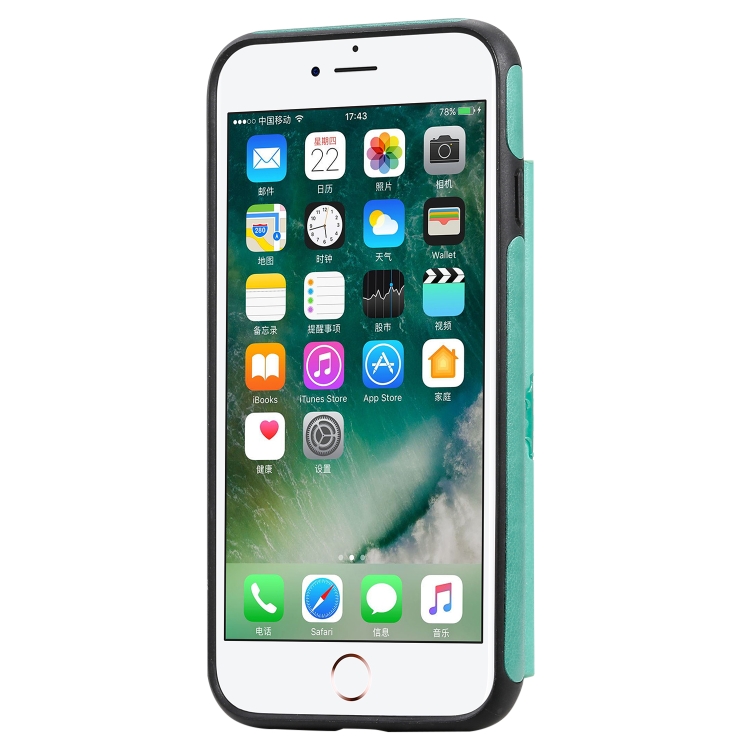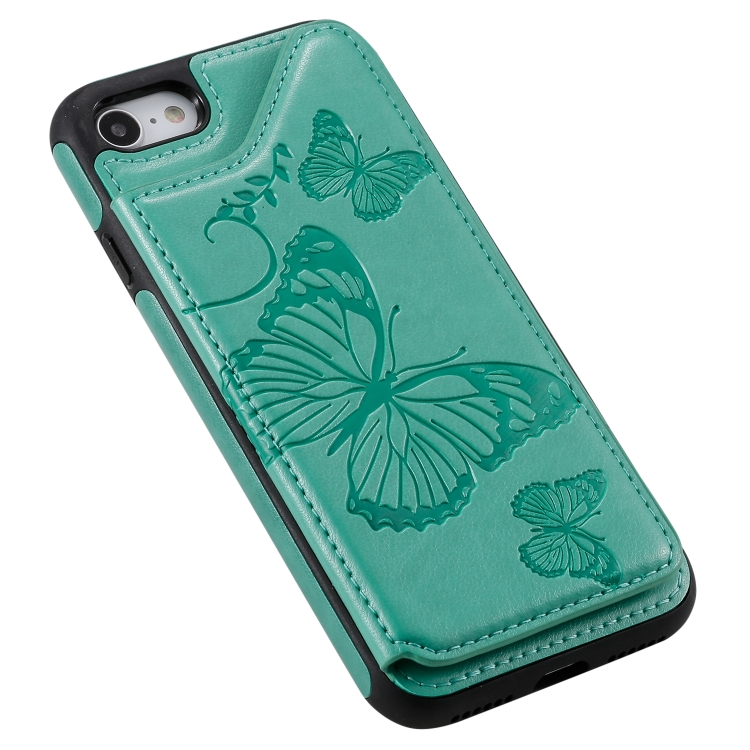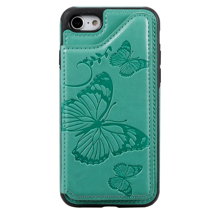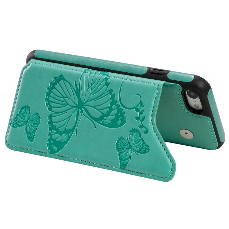 Funda Protectora para iPhone 7 y 8 Estampado Mariposas Soporte Ranuras Tarjetas Marco Fotos (Verde)