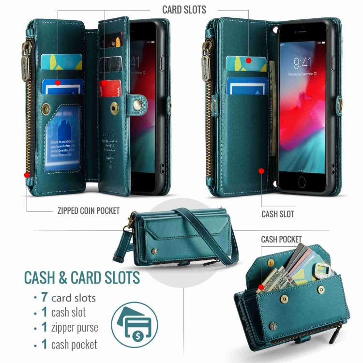Funda para iPhone 8/7/6 Caseme C36 Cartera con Ranuras para Tarjetas y Cremallera Antirrobo Rfid (Azul-Verde)