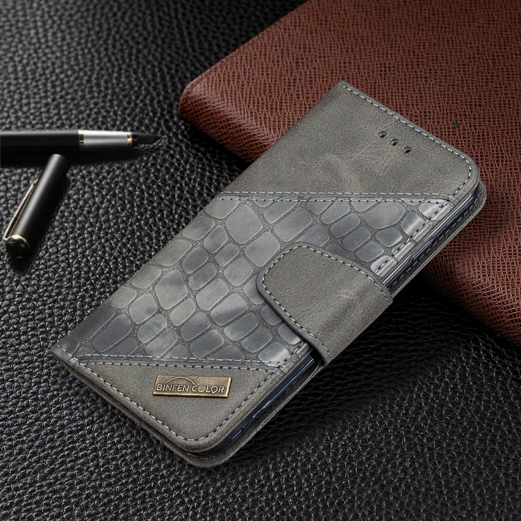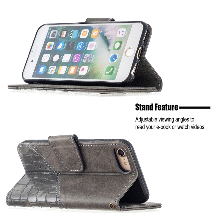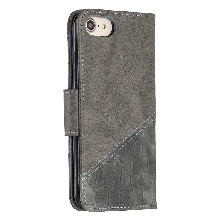 Funda para iPhone 8/7 Cuero de PU Textura de Cocodrilo con Tapa Horizontal Billetera Soporte Ranuras para Tarjetas (Gris)