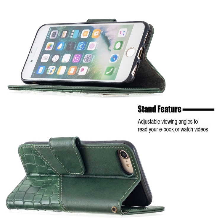 Funda de Cuero Pu para iPhone 8/7 con Tapa Horizontal, Billetera, Soporte y Ranuras para Tarjetas (Verde)