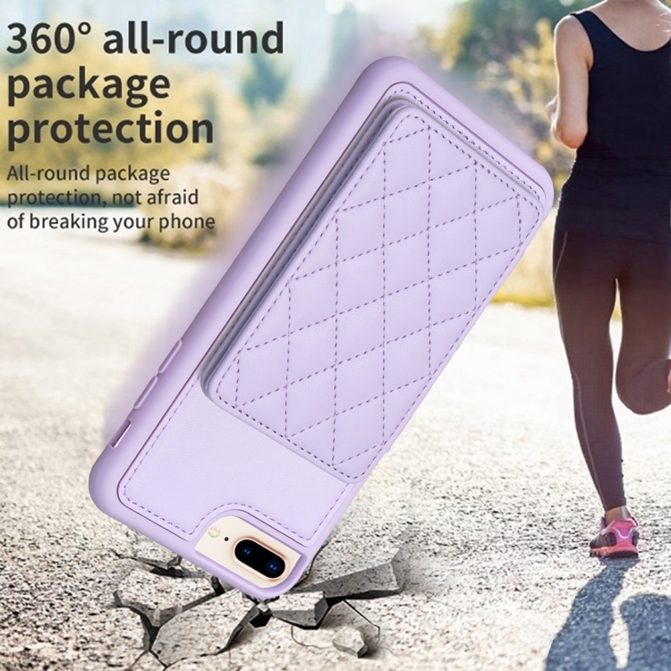 Funda para iPhone 8 Plus 7 Plus Bf25 Square Plaid Porta Tarjetas (Púrpura)