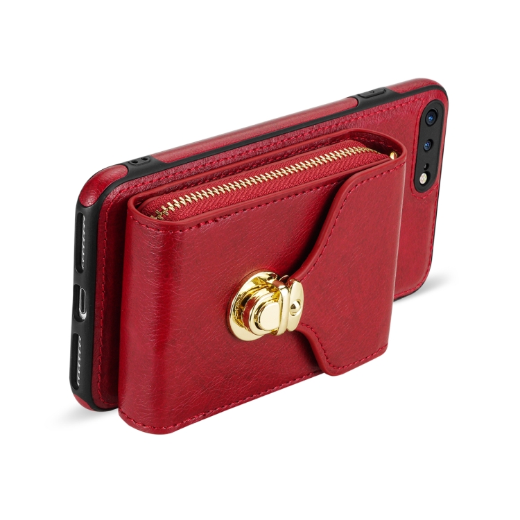 Funda para iPhone 8 Plus y 7 Plus con Cremallera Hardware y Porta Tarjetas (Rojo)