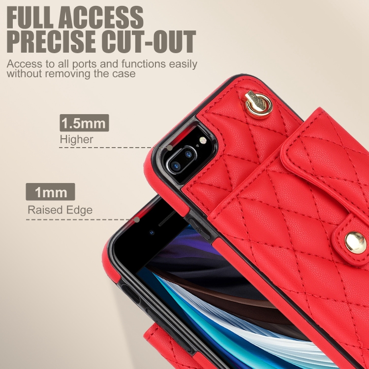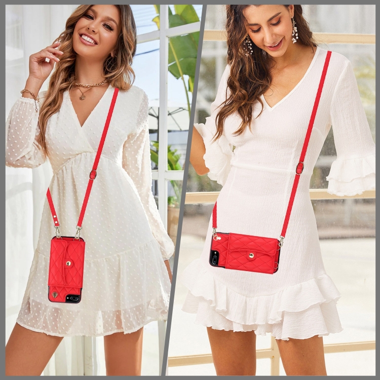 For iPhone 8 Plus/7 Plus Crossbody Rhombus Horizontal Wallet Leather Phone Case (Red)