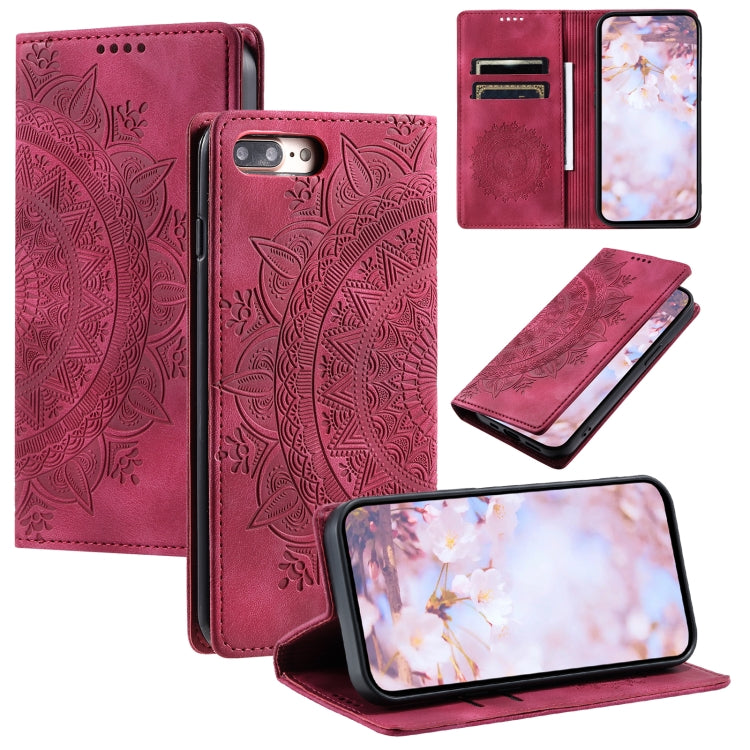 Funda para teléfono iPhone 8 Plus/7 Plus cuero magnético con relieve de tótem (Rojo)
