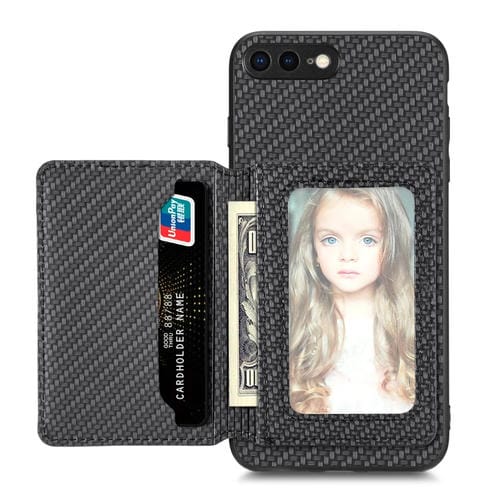 Caja de Teléfono para iPhone Se 2022/2020/7/8 con Bolsa de Tarjeta Magnética Fibra de Carbono (Negro)