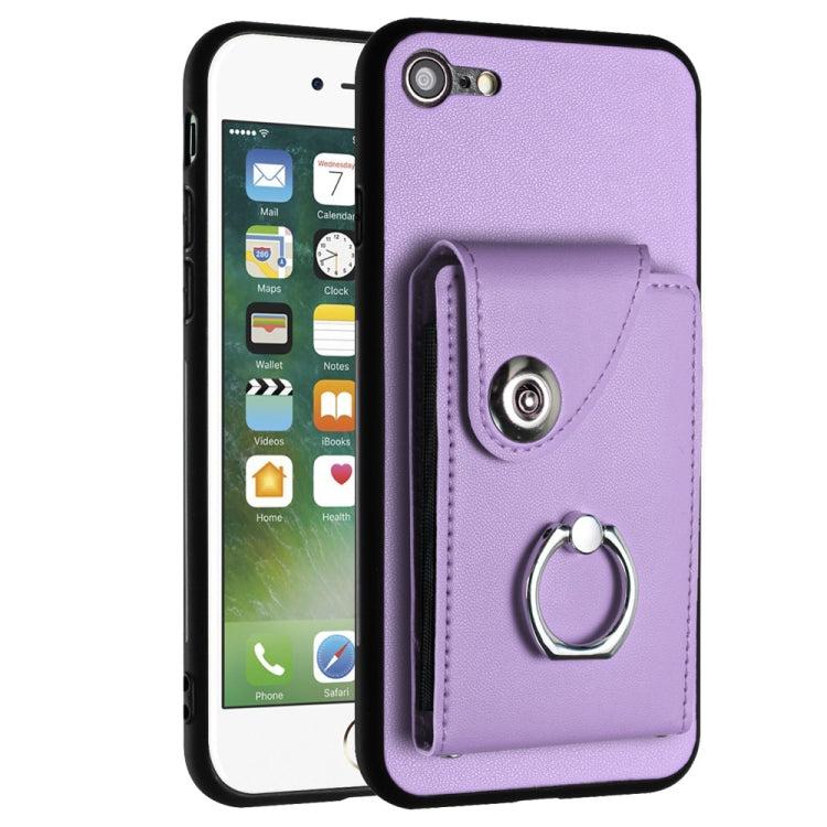 Funda para Teléfono iPhone SE 2022/2020/8/7 con Soporte para Anillo y Bolsa para Tarjeta (Púrpura)