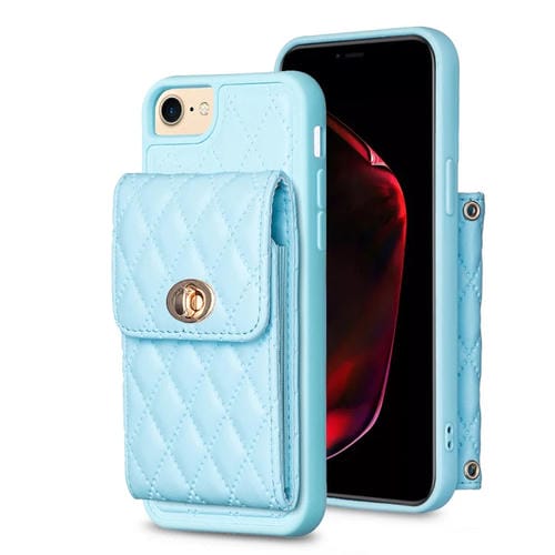 Caja de Teléfono Cuero Rombal para iPhone Se 2022 Se 2020 7 8 con Hebilla Metal Vertical (Azul)