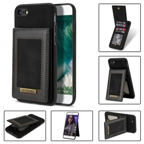 Estuche para Teléfono N.Bekus iPhone SE 2022 SE 2020 8 7 Rfid Ranura Tarjeta Tapa Vertical (Negro)