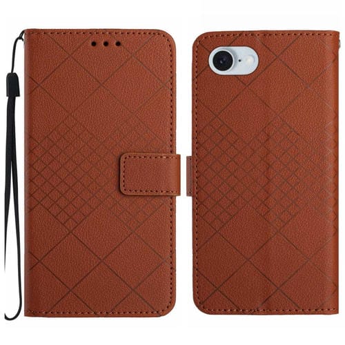 Funda de Cuero para iPhone 16E Textura Cuadrícula Rómbica (Marrón)