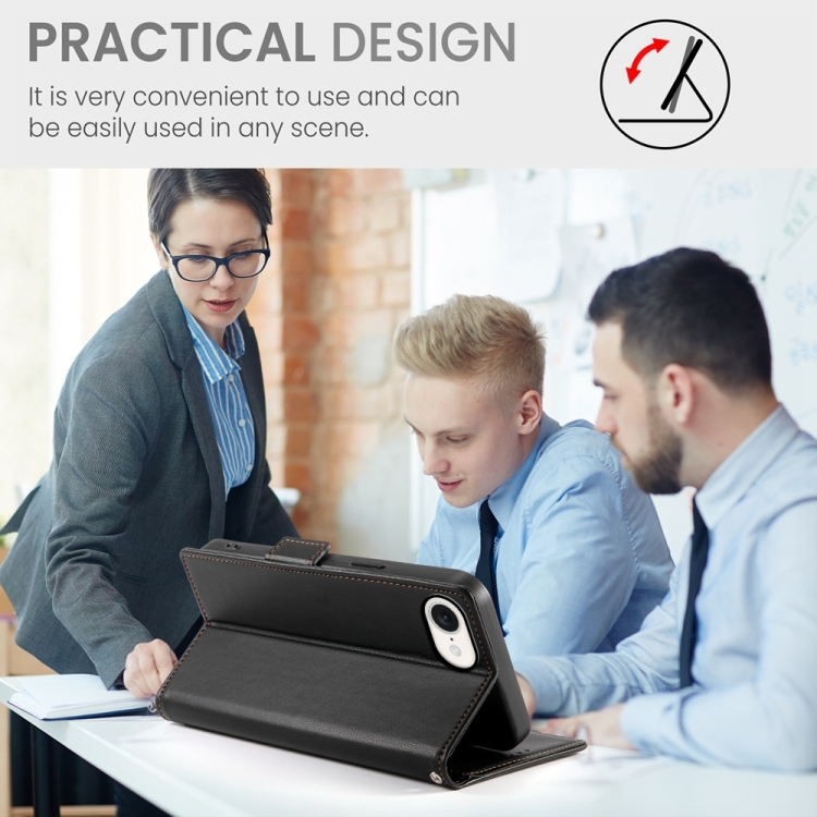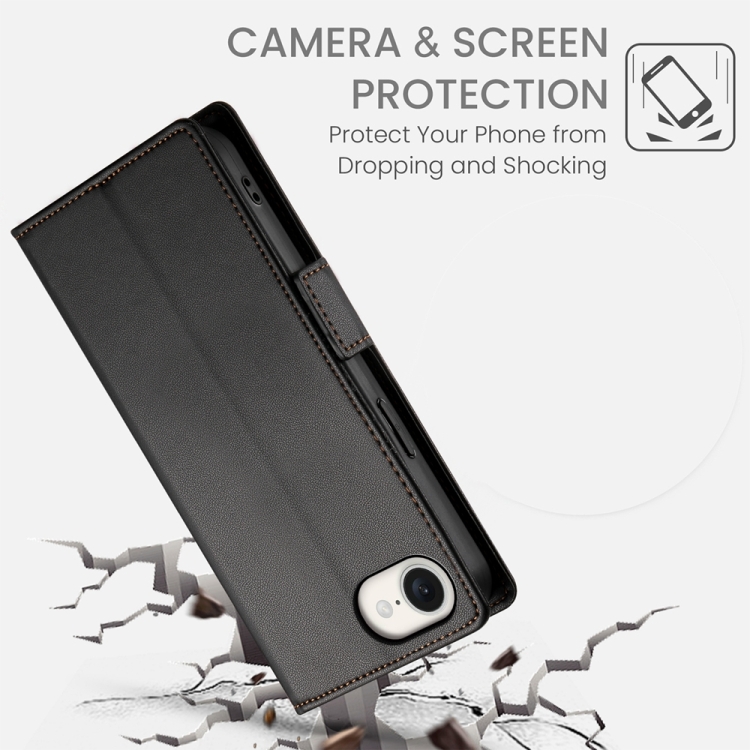 Funda de Cuero Esmerilado con Hebilla Lateral Magnética para iPhone 16E (Negro)