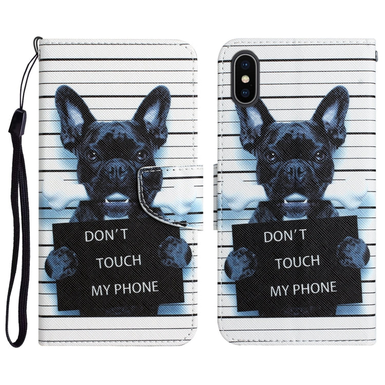 For iPhone X Colored Drawing Leather Phone Case (Black Dog)