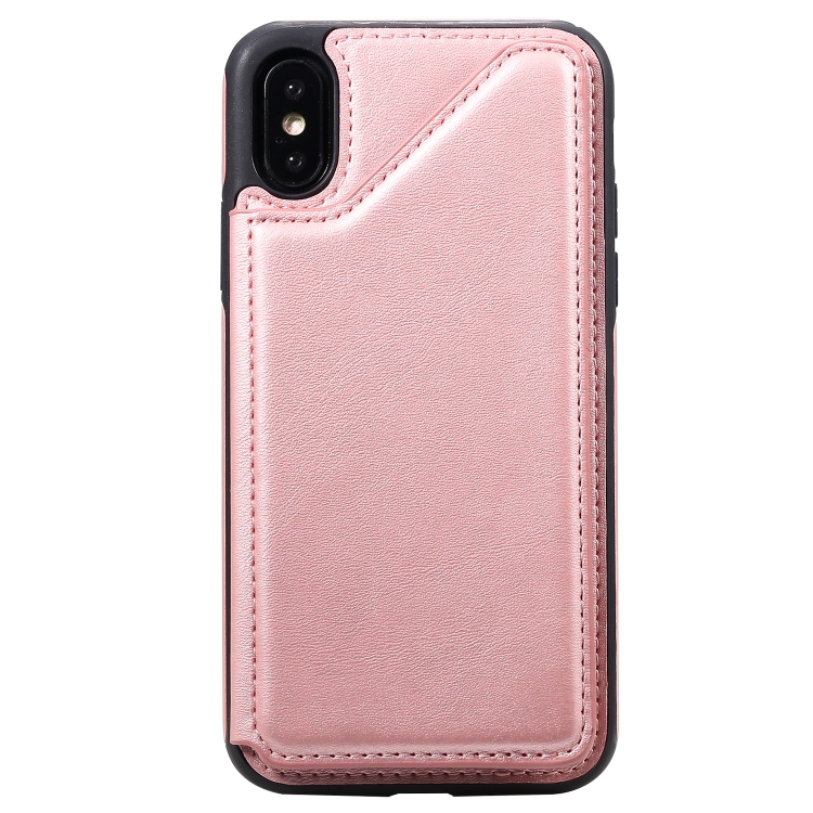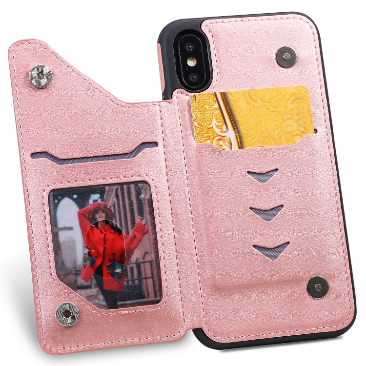 Funda Protectora iPhone X Textura Pantorrilla Soporte Ranuras Tarjetas (Oro Rosa)