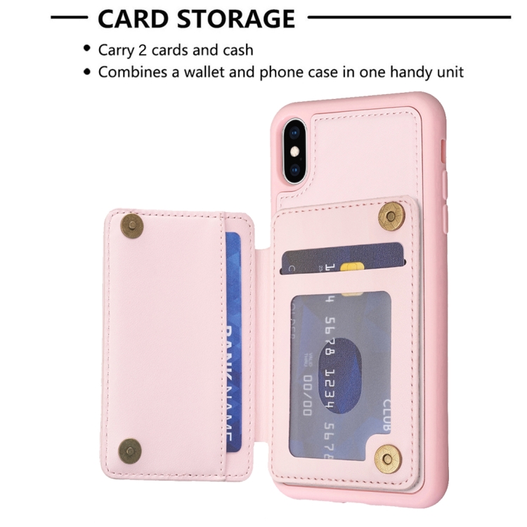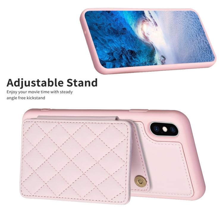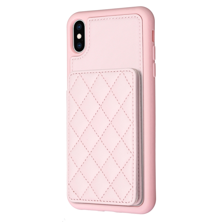 Funda para Teléfono Bf25 Square Plaid Card Bag Holder para iPhone X y Xs (Rosa)