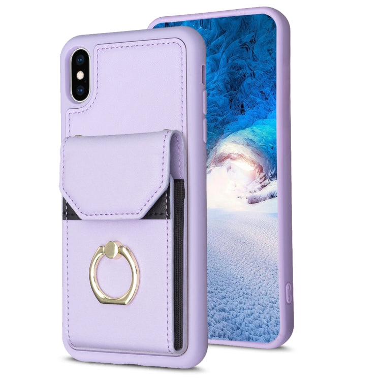 Funda para Teléfono iPhone X / Xs Bf29 con Soporte para Anillo y Bolsa para Tarjeta de Órgano (Púrpura)