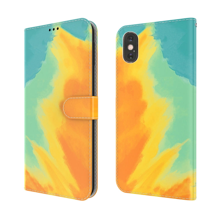 Estuche de Cuero para iPhone X / Xs con Tapa Horizontal, Patrón Acuarela, Soporte, Ranura para Tarjeta y Billetera (Hoja de Otoño)