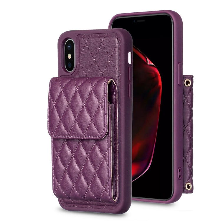 Estuche de Teléfono iPhone X / Xs Cuero Rómbico con Billetera Vertical (Púrpura Oscuro)