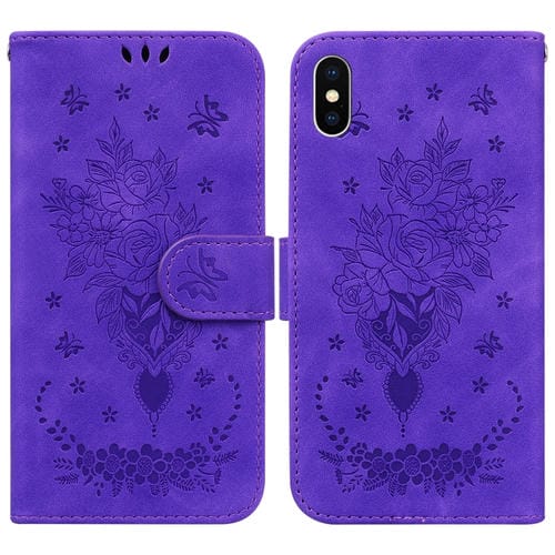 Estuche para Teléfono iPhone X / Xs Cuero En Relieve Butterfly Rose (Púrpura)