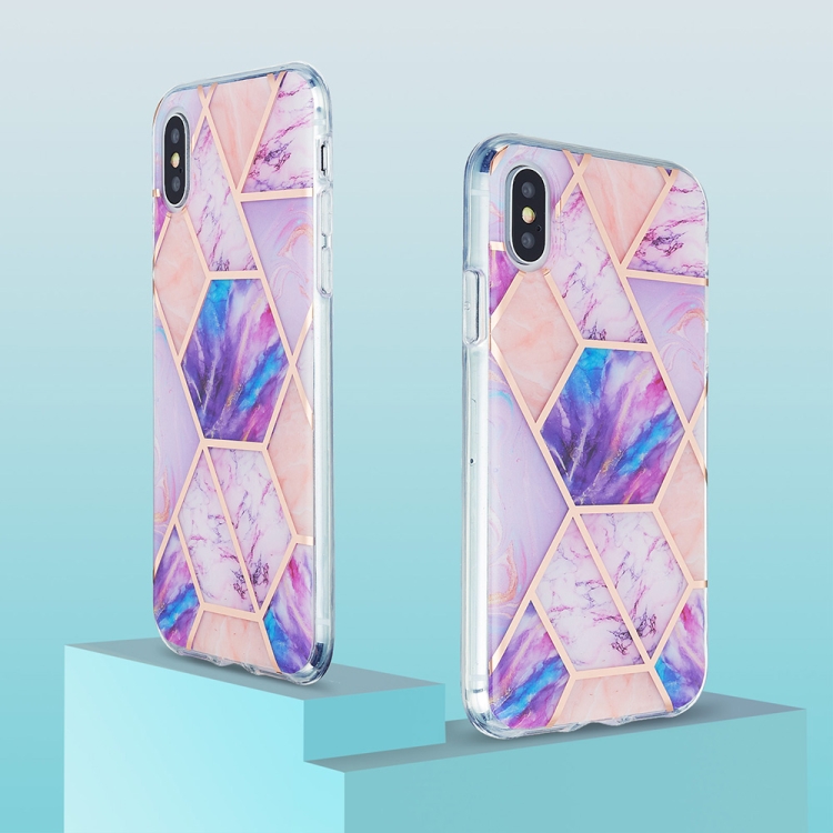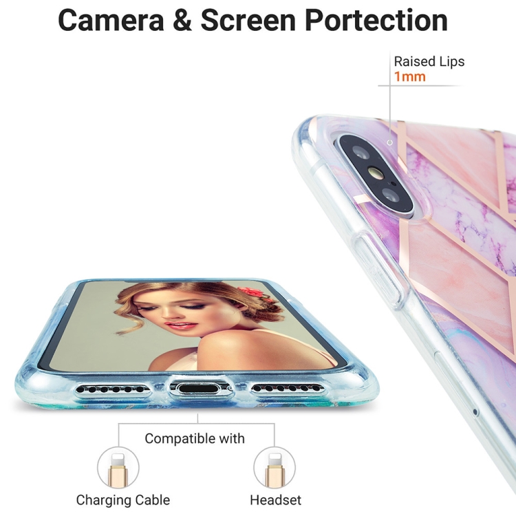 Estuche Protector TPU para iPhone X Xs Patrón Mármol Galvanoplastia 3D (Rosa Púrpura)