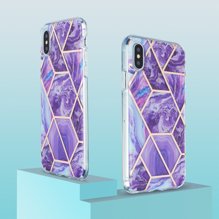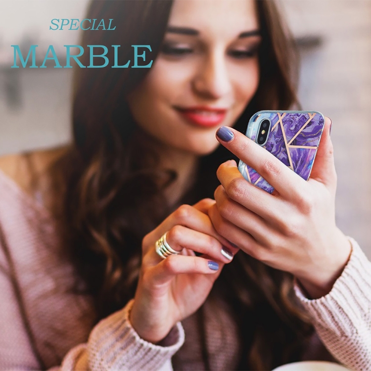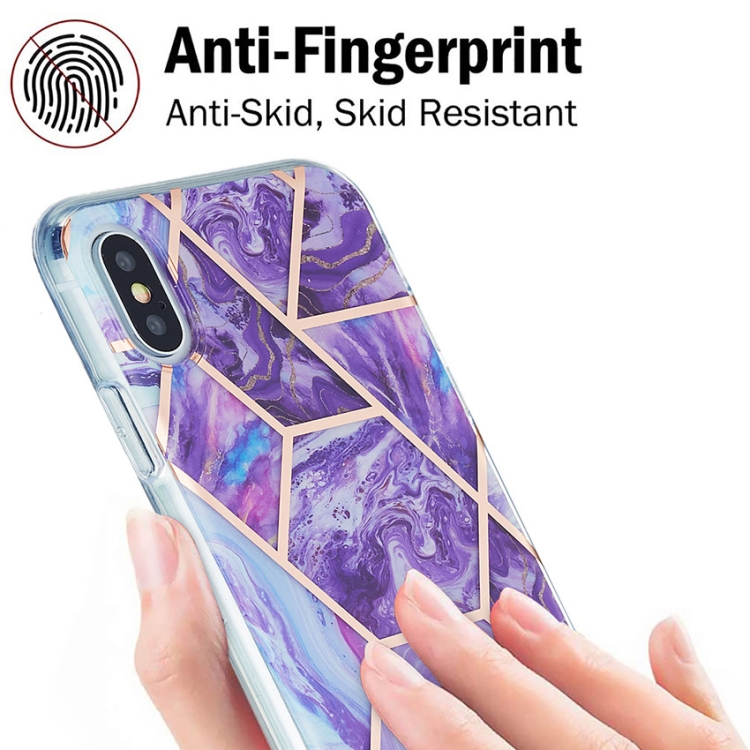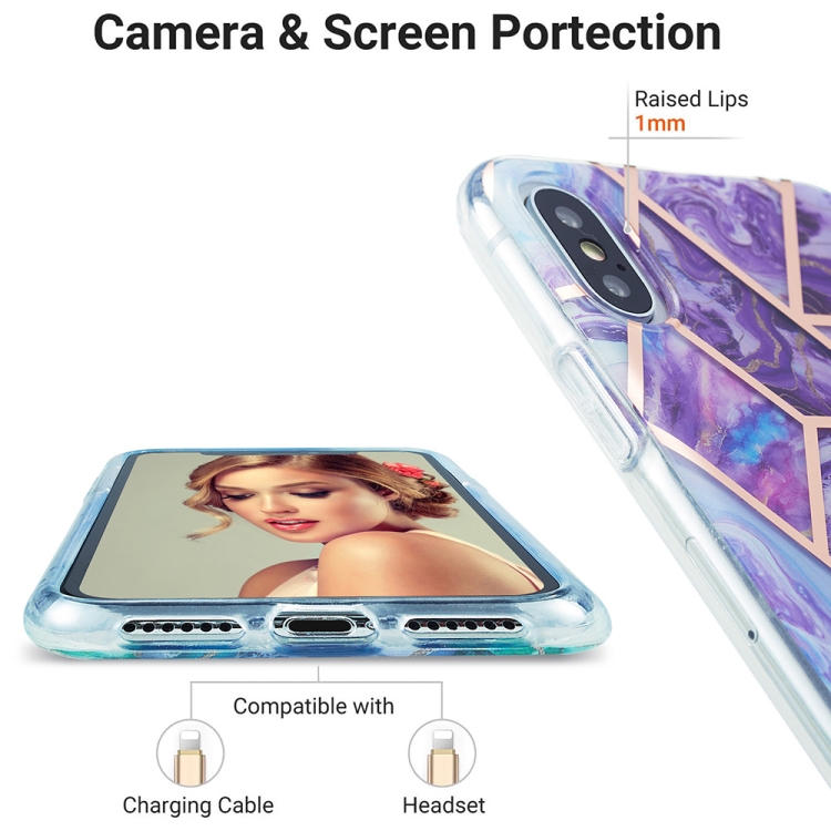 Estuche Protector TPU iPhone X Xs Patrón Mármol Galvanizado 3D (Púrpura)