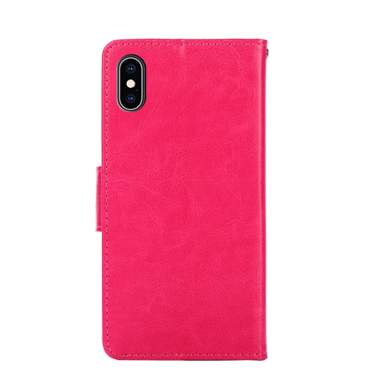 Funda de Cuero para iPhone X / Xs con Tapa Horizontal Textura de Cristal Soporte Ranuras para Tarjetas y Billetera (Rosa Roja)