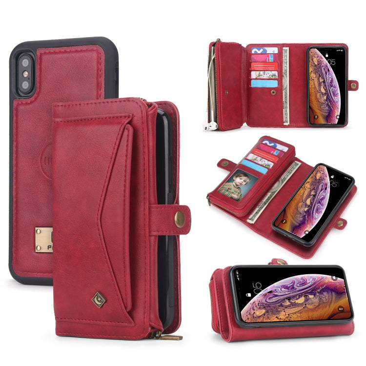 Funda de Cuero para Teléfono iPhone X Xs con Billetera y Cremallera Multifuncional (Rojo)