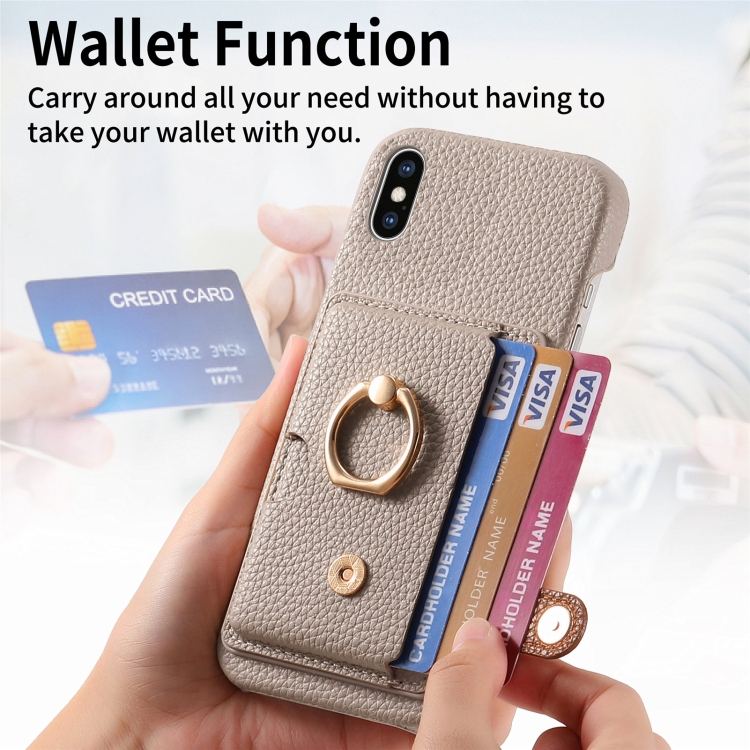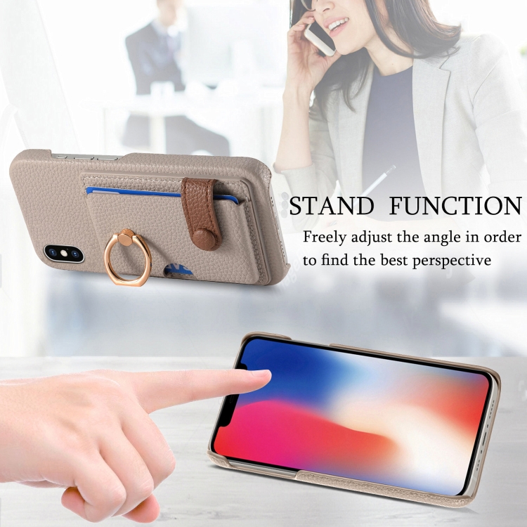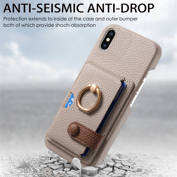 Funda para Teléfono iPhone X Xs con Parte Posterior de Tarjeta Anillo y Borde de Cuero Litchi (Caqui)