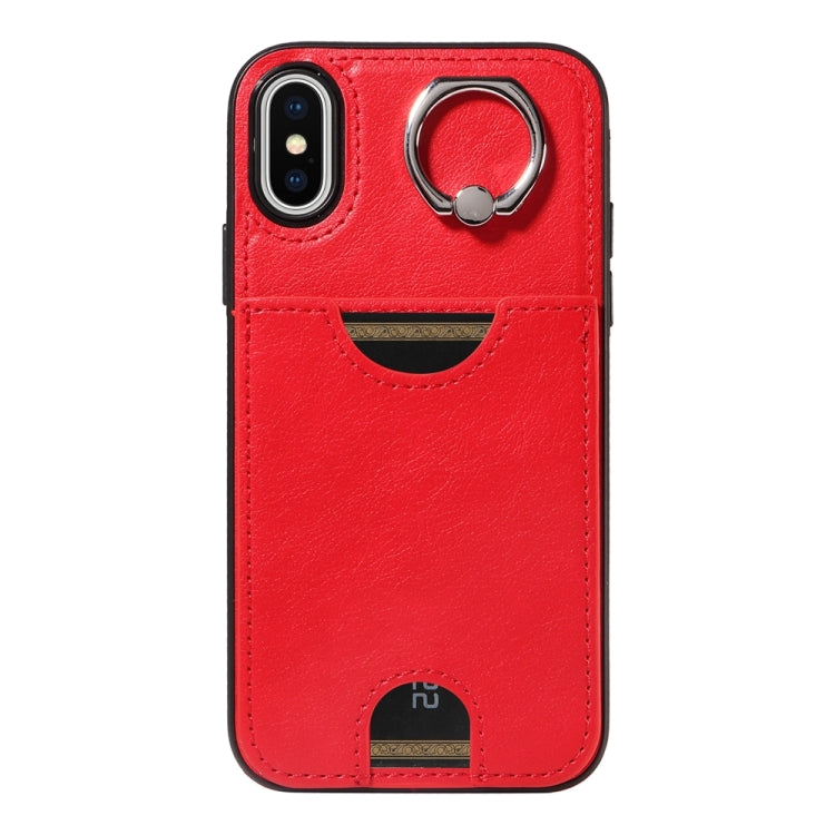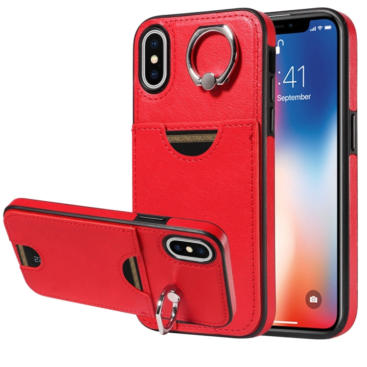 Funda para Teléfono iPhone X Xs con Soporte para Anillo y Ranura para Tarjeta (Rojo)