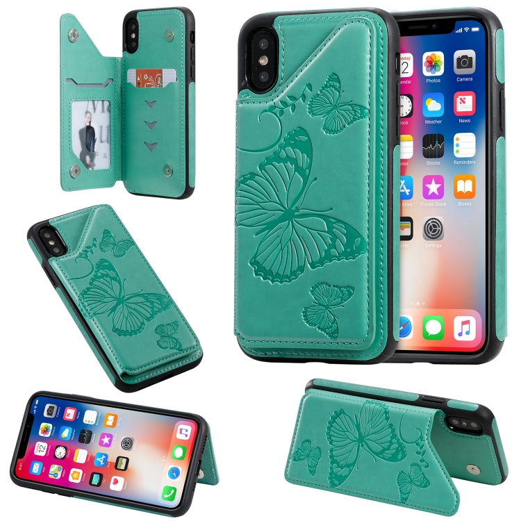 Funda Protectora iPhone X y Xs Patrón Mariposas Soporte Ranuras Tarjetas Marco Fotos (Verde)