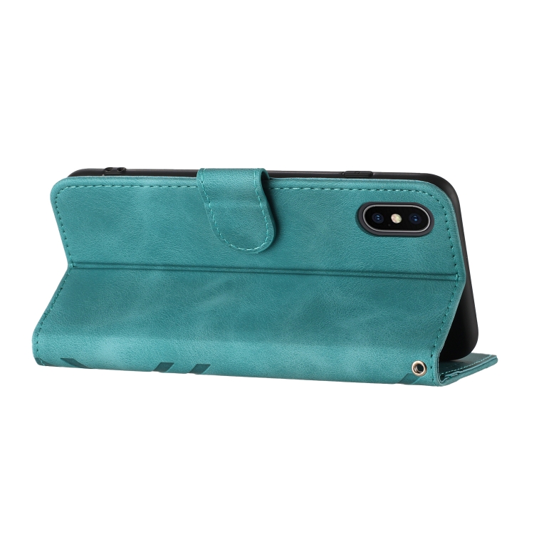 Funda de Cuero para iPhone X Xs Line Pattern Skin Feel (Azul Claro)