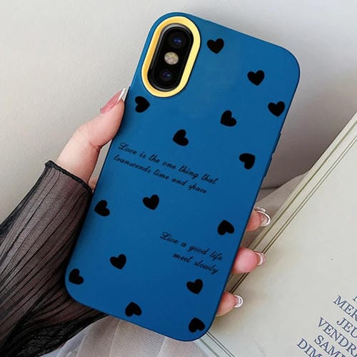 Funda híbrida para teléfono iPhone X/Xs Love Hearts PC TPU (Azul Real)