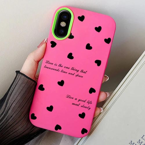 Funda híbrida para iPhone X Xs Love Hearts PC y TPU (Rojo Rosa)