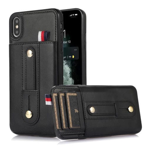 Funda para iPhone X / Xs Muñequera Kickstand Wallet de Cuero para Teléfono (Negro)