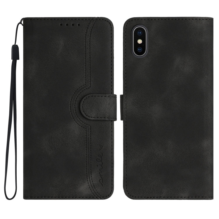 Funda para iPhone X/Xs Piel Sensación Patrón de Corazón para Teléfono (Negro)