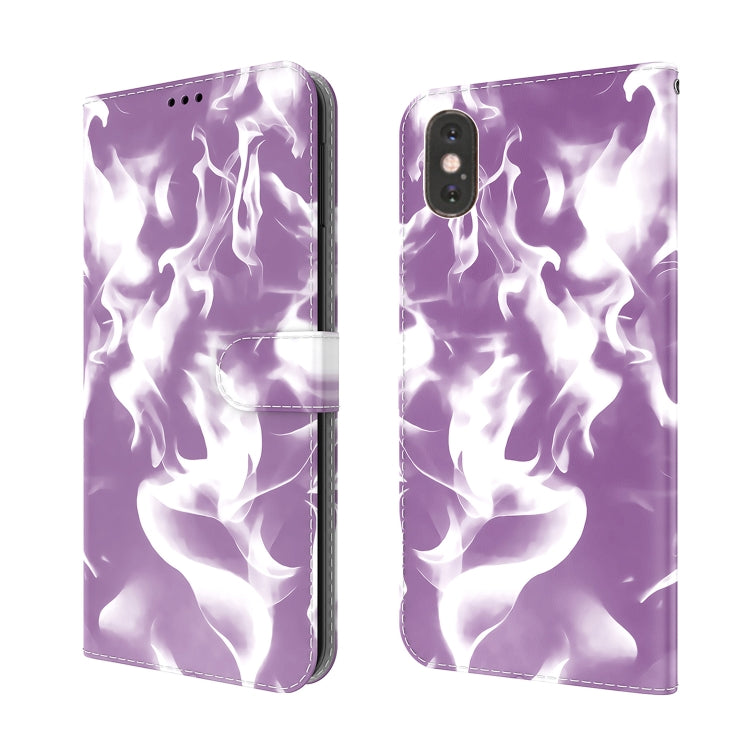 Funda para iPhone X Xs Cuero Patrón Niebla con Tapa Horizontal Soporte Ranura Tarjeta Billetera (Púrpura)