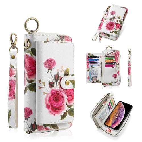 Funda para Teléfono Pola Flower iPhone X Xs Cuero con Billetera y Cremallera Multifuncional (Beige)