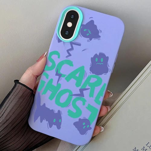 Funda híbrida para iPhone X Xs Scared Ghost PC y TPU (Púrpura)