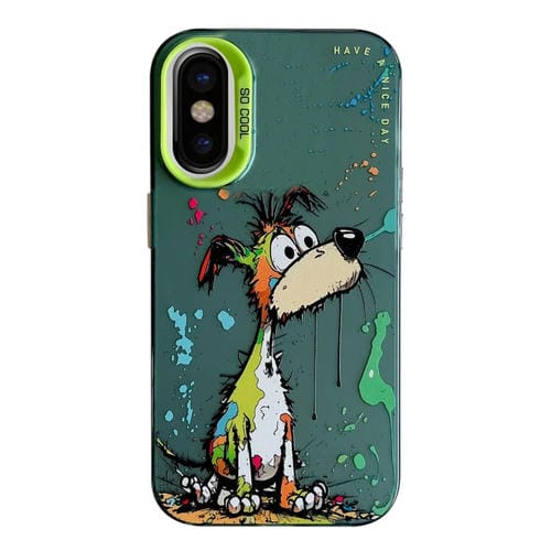 Funda para iPhone X Xs Serie Pintura al Óleo Patrón Animales PC TPU (Perro Verde)