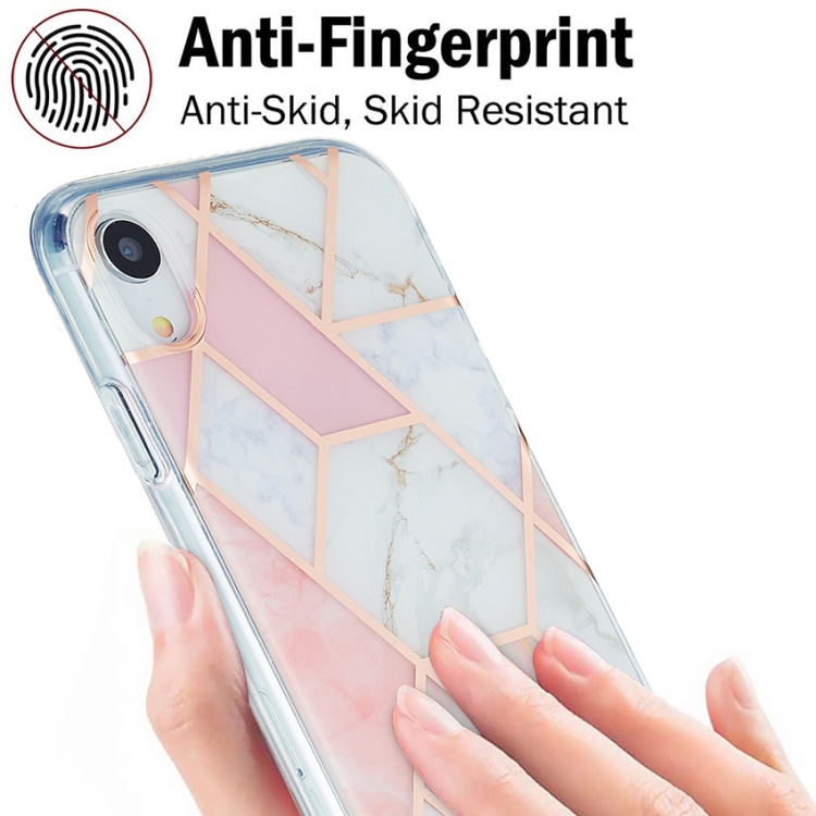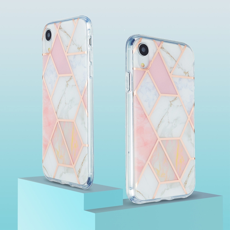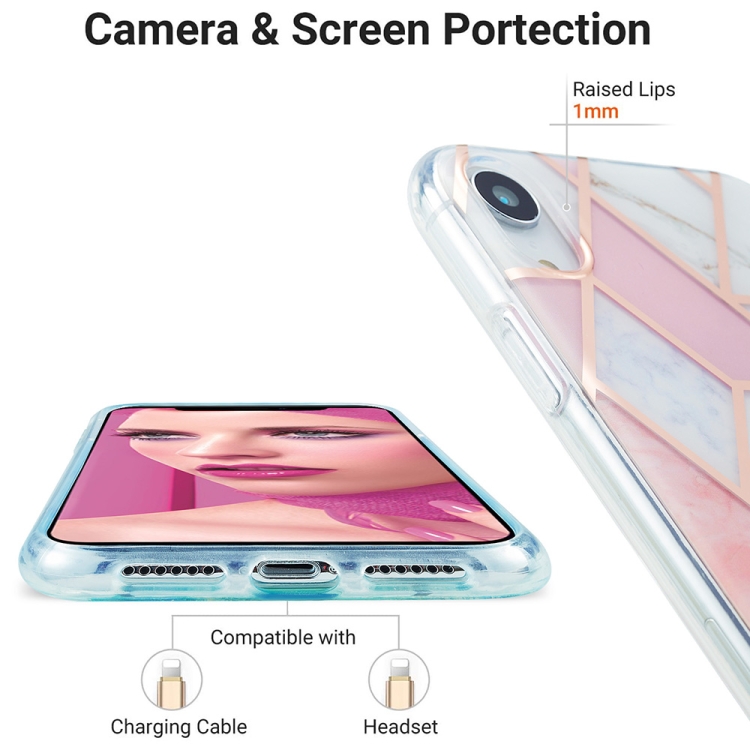 Funda Protectora TPU para iPhone Xr 3D Galvanoplastia Patrón de Mármol (Rosa)