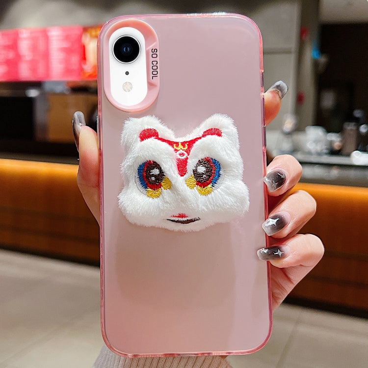 Funda para Teléfono iPhone Xr Lion Dance Plush Doll Año Nuevo (León Blanco con Espalda Rosa)