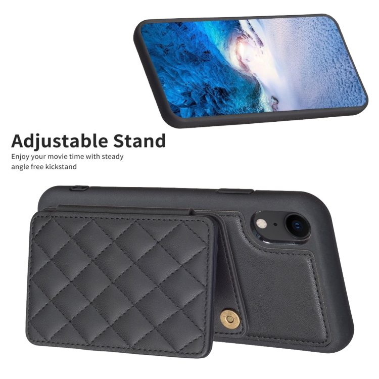 Funda para iPhone Xr Bf25 Square Plaid Porta Tarjetas Bolsa (Negro)
