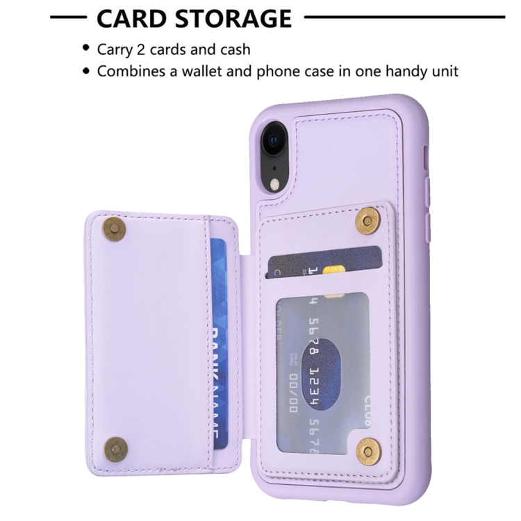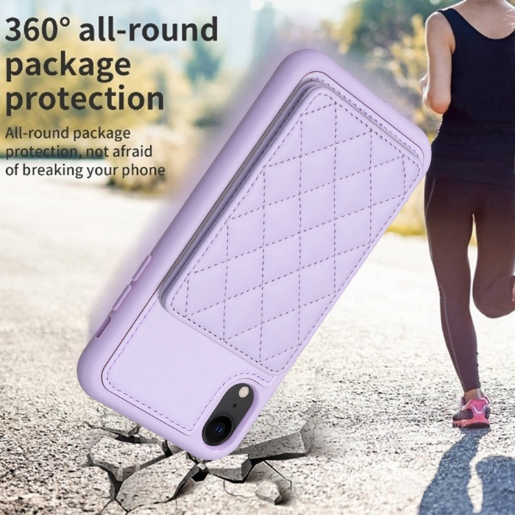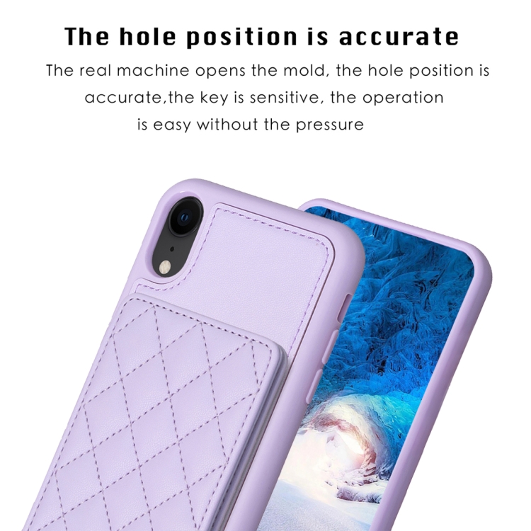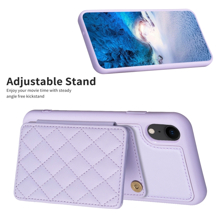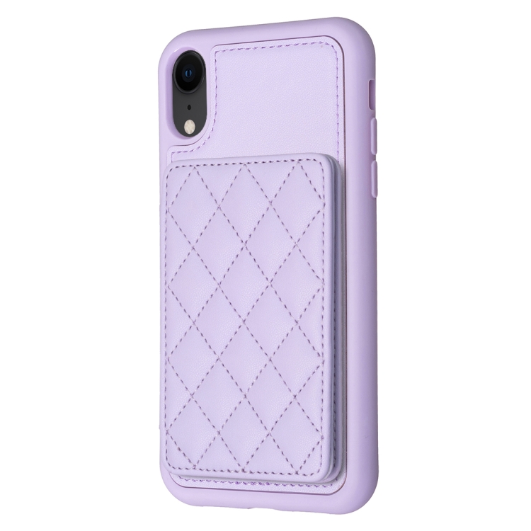Funda para iPhone Xr Bf25 Square Plaid Card Bag Holder con soporte para tarjetas (Púrpura)