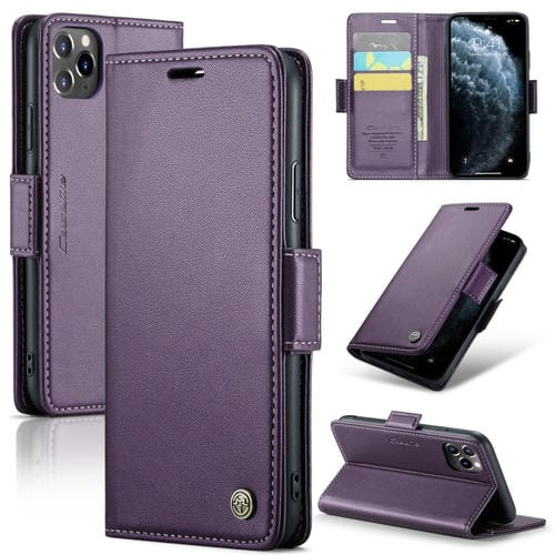 Funda para iPhone Xr Caseme 023 Hebilla de Mariposa Litchi Textura Rfid Cuero Antirrobo (Púrpura Nacarado)